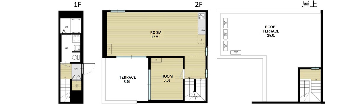 2階terrace:13.2㎡ / rooftop terrace:41.4㎡