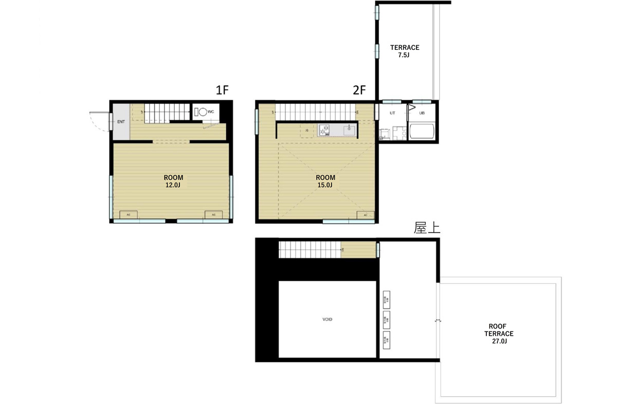 2階terrace:12.4㎡ / rooftop terrace:44.7㎡
